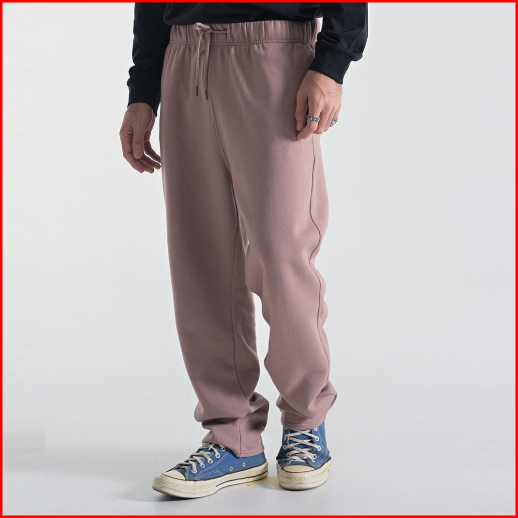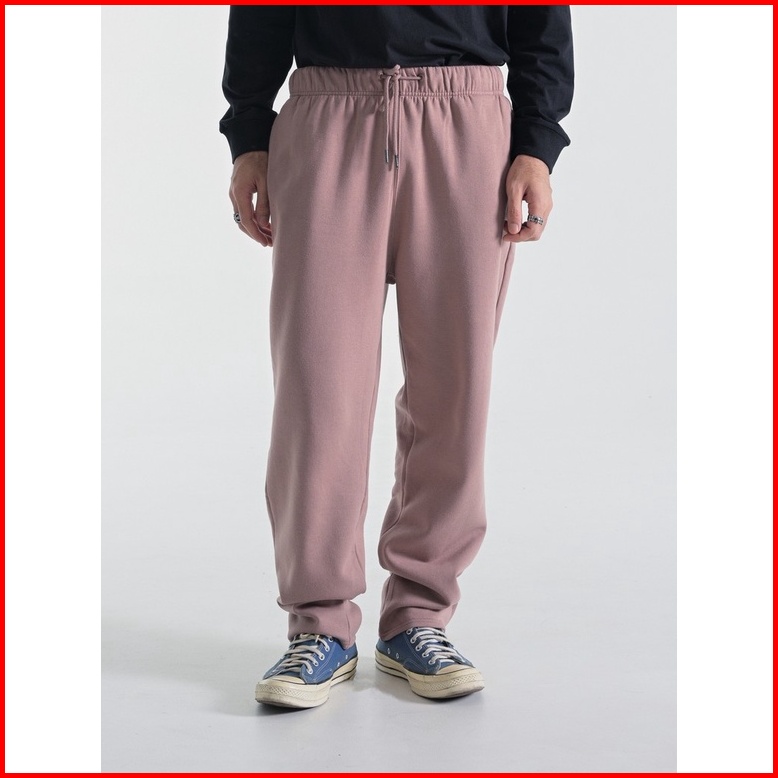 Moutley Celana Panjang Relaxed Pria Loose Pants Katun Terry Full Karet Pinggang Casual Sporty Pink 080423