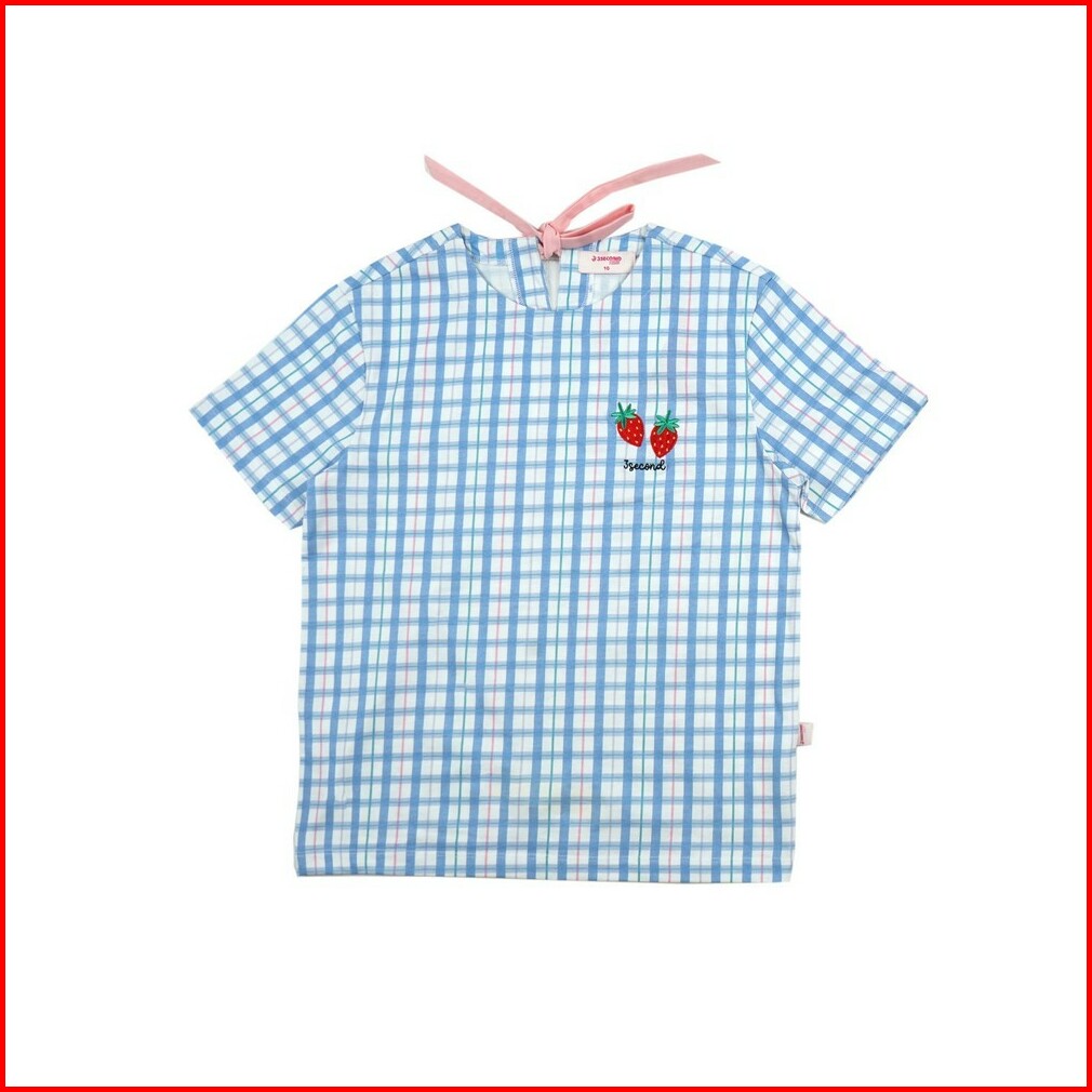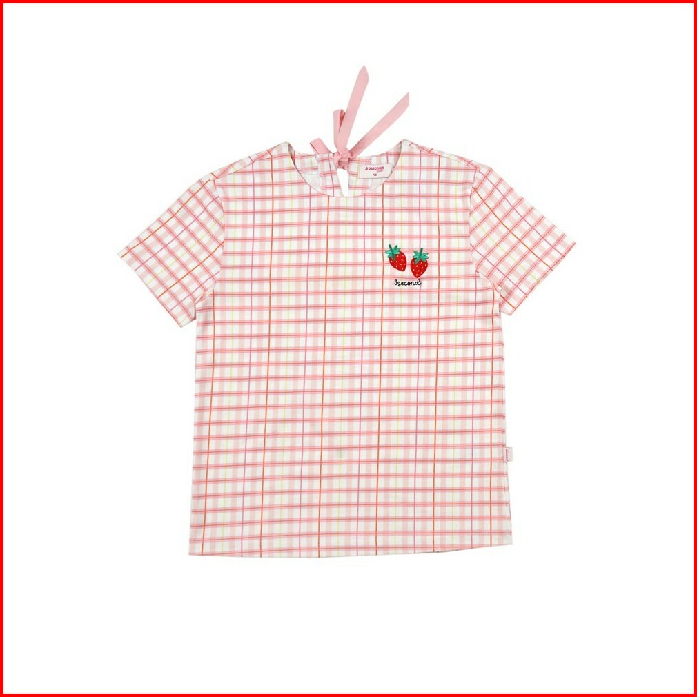 3second Kids Kaos Anak Perempuan Lengan Pendek Regular Fit Plaid Ribbon Bow Sweet Berry C021124