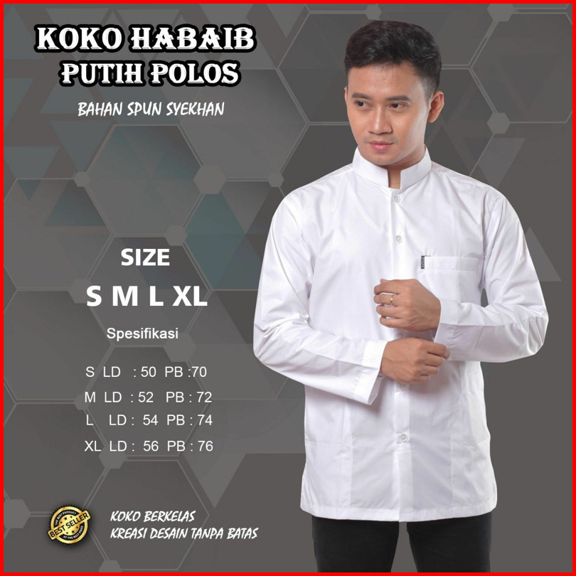 Baju Koko Habaib Putih Polos Lengan Panjang Baju Koko Haibah Model Ammu