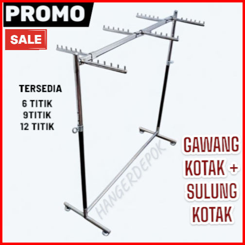 Gantungan Baju Gawang Kotak Ukuran 120cm Suling Kotak 6 Titik 6pcs
