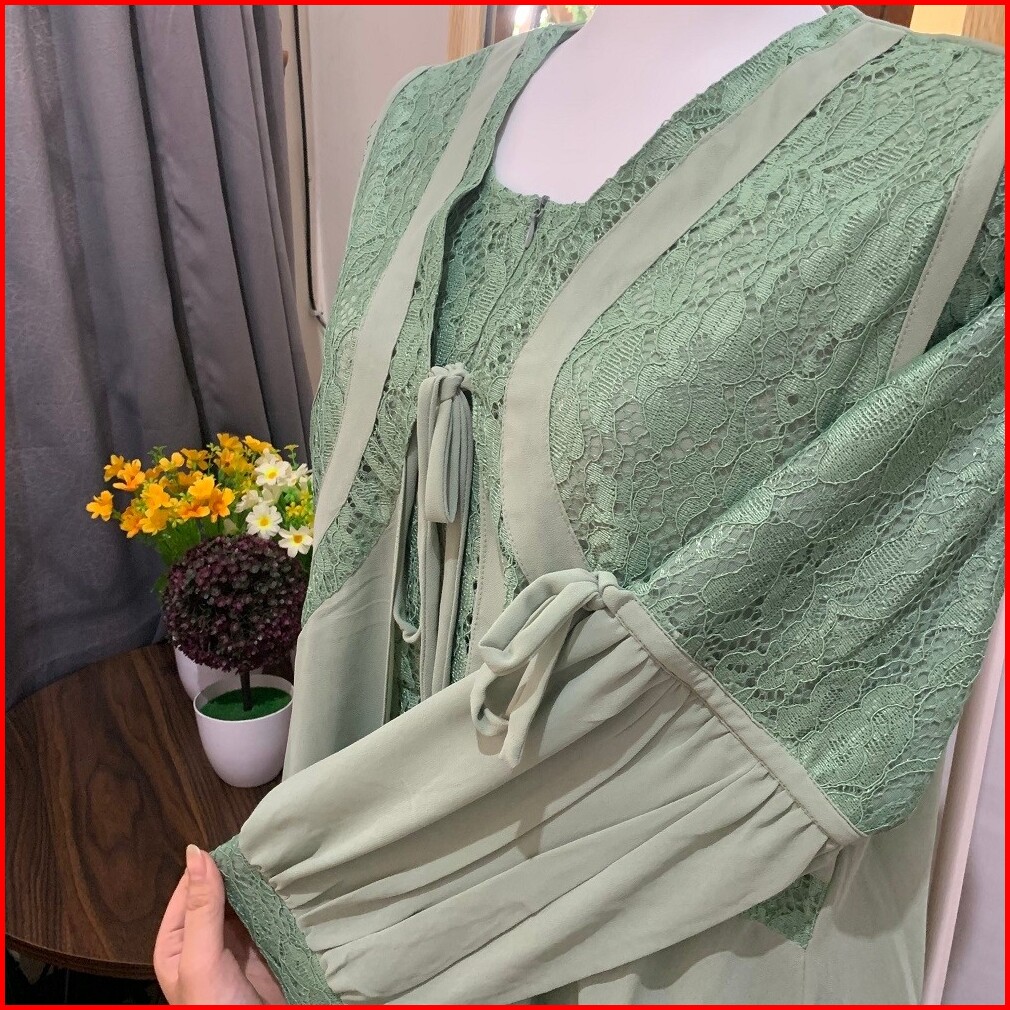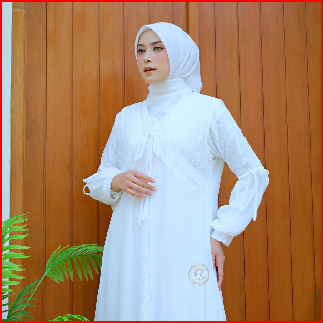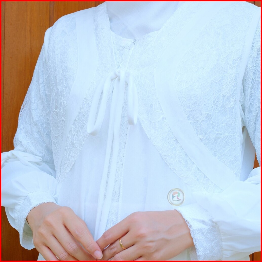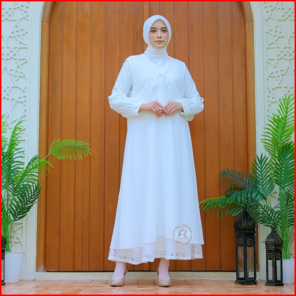 Raisma Gamis Putih Tulang Lebaran Cantik Dan Elegan Kombinasi Brokat Dan Ceruti Layla