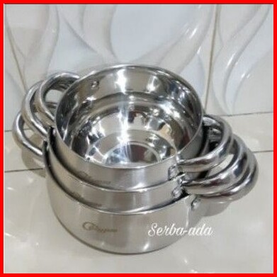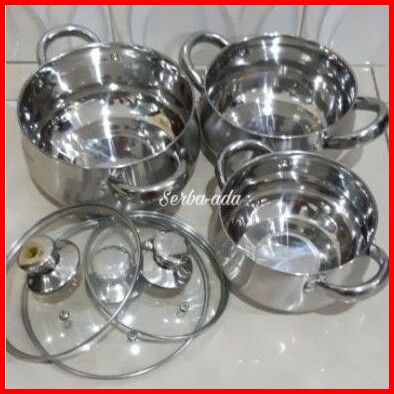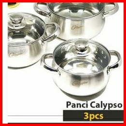 Panci Set Calypso Stainless Steel Isi 3 Set Tutup Kaca