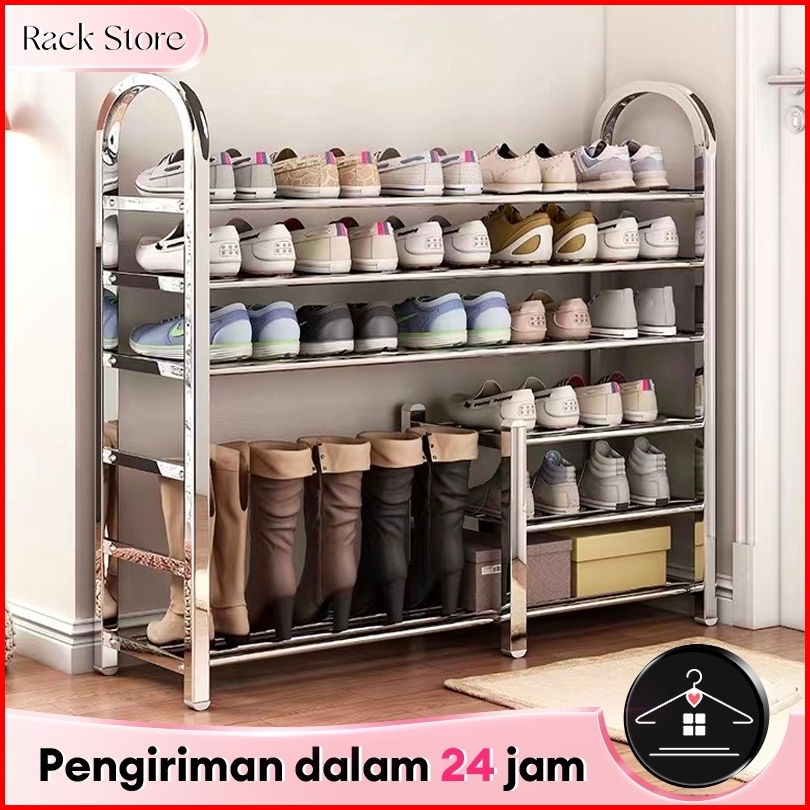 Rak Sepatu Tingkat Stainless Steel Kokoh Tempat Sepatu Sendal Besi Rak Sepatu 6 Susun Multifungsi