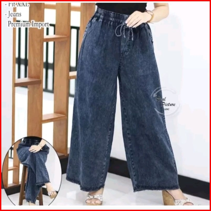 Celana Kulot Jeans Pinggang Karet Celana Panjang Wanita Viral