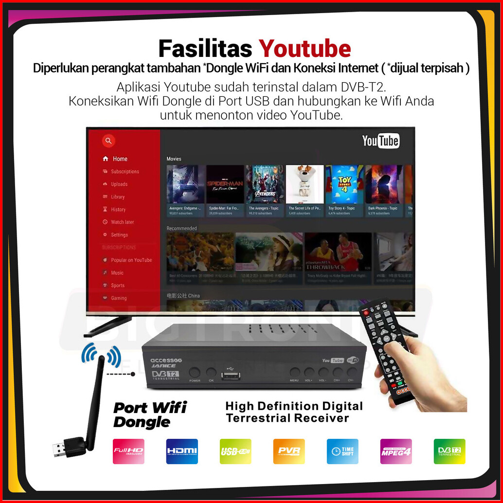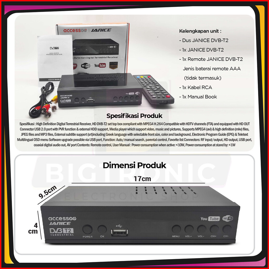 Accessgo Stb Set Top Box Janice Dvb-t2 Penerima Siaran Tv Digital Bisa Youtube Original Bergaransi