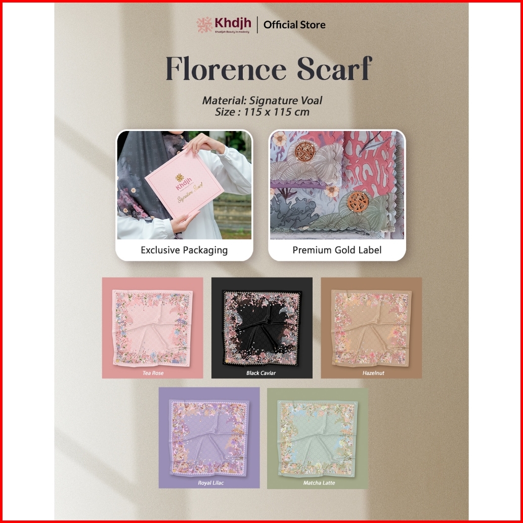 Khadijahlabel Hijab Jilbab Segi Empat Printing Voal Scarf Premium Terbaru Motif Florence