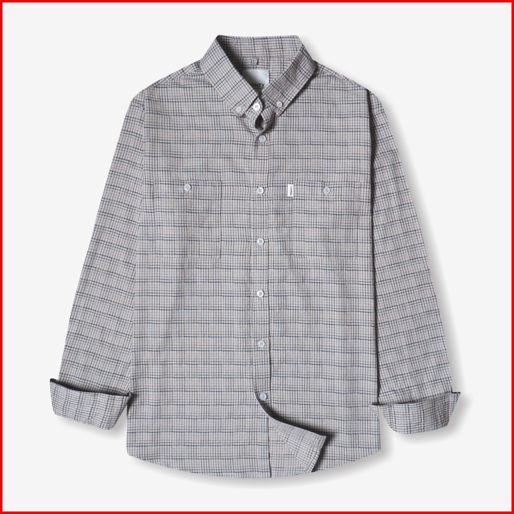 Highty Grey-navy Grid Cotton Shirt Kemeja Lengan Panjang Pria