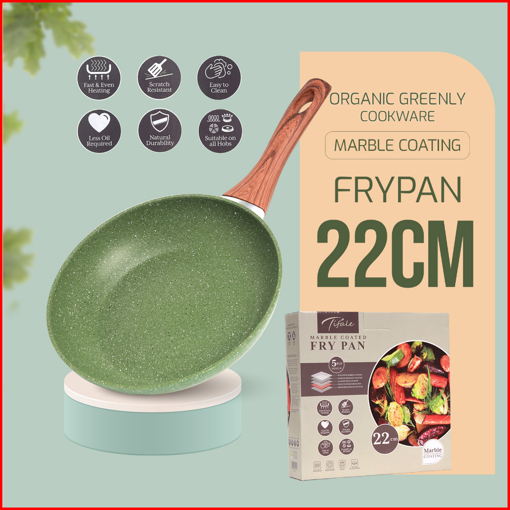 Tifale Organic Greenly Cookware Marble Coated Anti Lengket Handle Bakelite Silicone Anti Leleh Avocado Pan