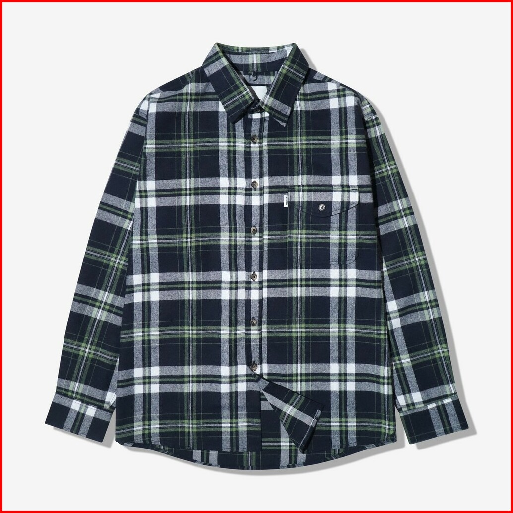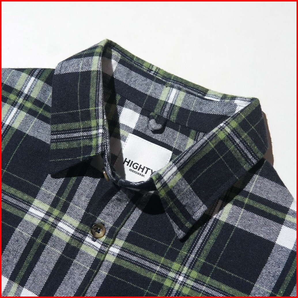 Highty Black Green Check Flannel Regular Kemeja Lengan Panjang Pria