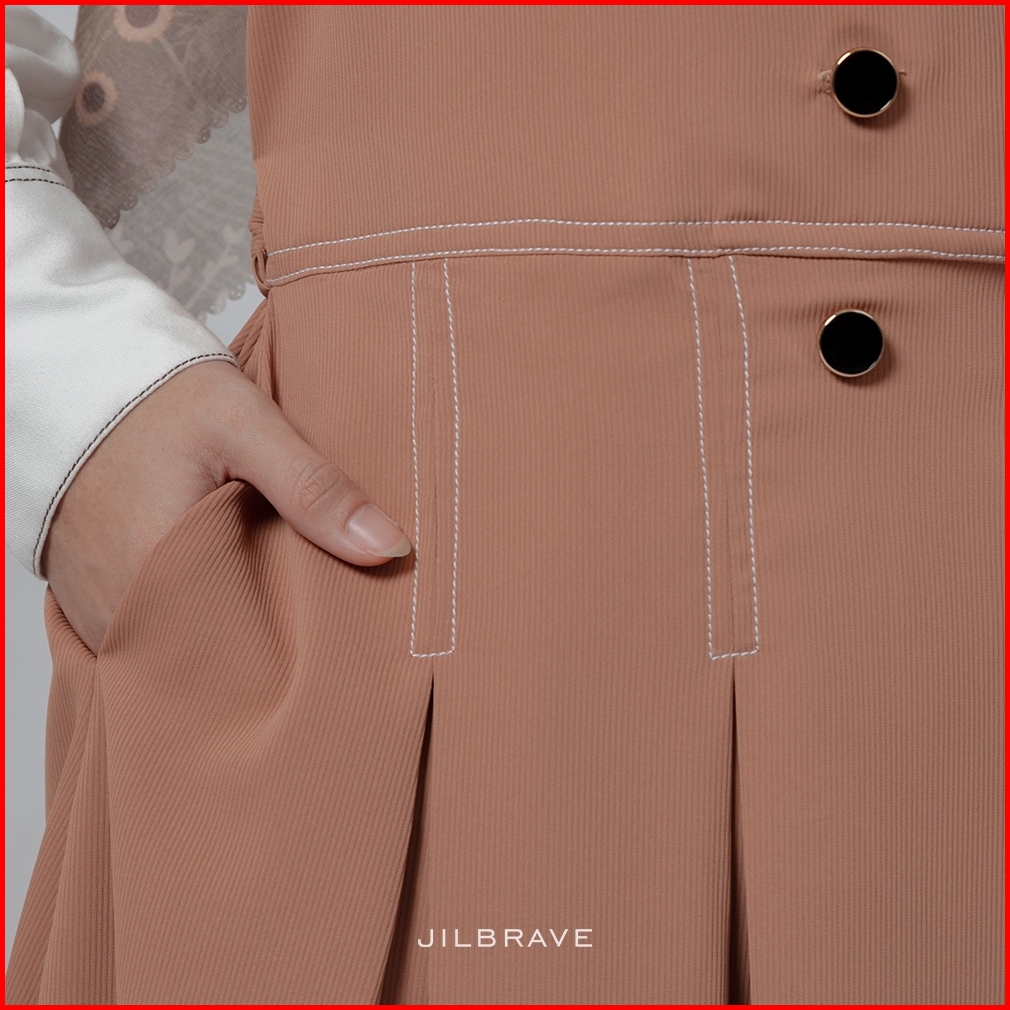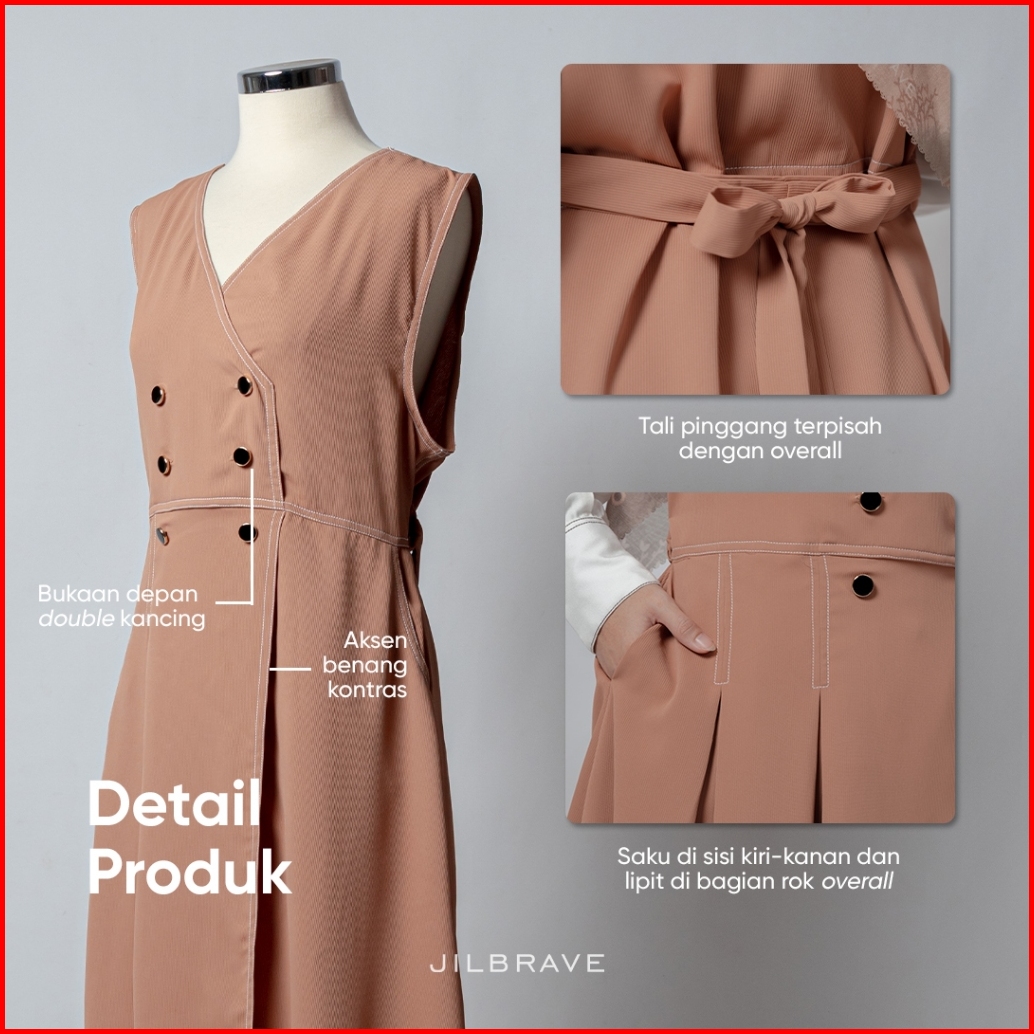Jilbrave Alya Overall Dress Tanpa Lengan Style Casual Clean Look Minimalist Aksen Benang Kontras