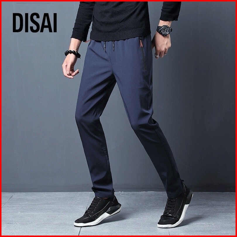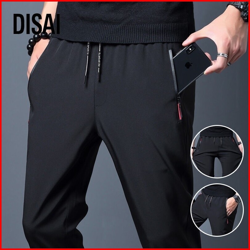 Disai - Celana Pria Tipis Saku Ritsleting Celana Cargo Kasual Olahraga Elastisitas Cepat K8021a