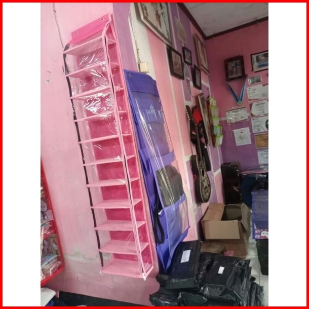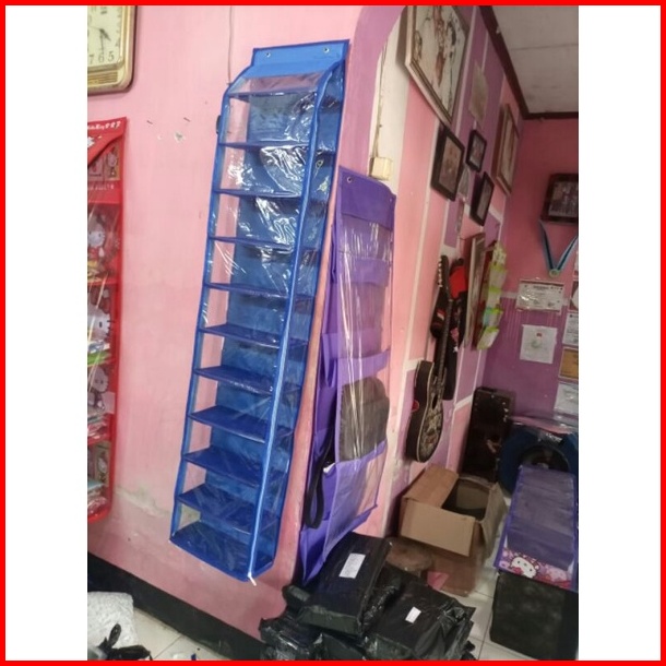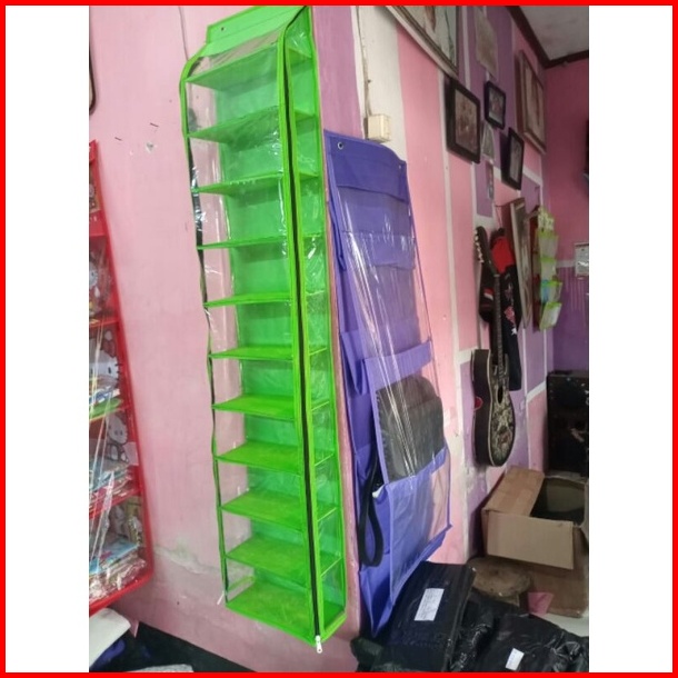 Rak Sepatu Gantung 11 Sap Dan Rak Tas Gantung 5 Kolom Pakai Resleting Kanan Kiri Alas Triplek Ukuran Jumbo Rak Sepatu Ga