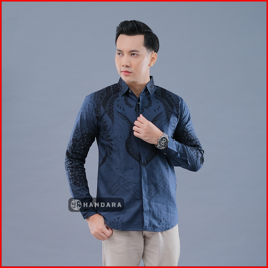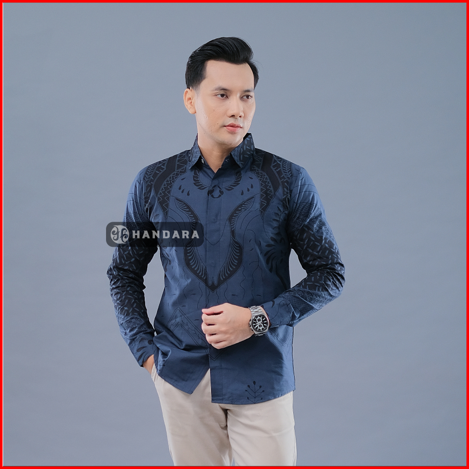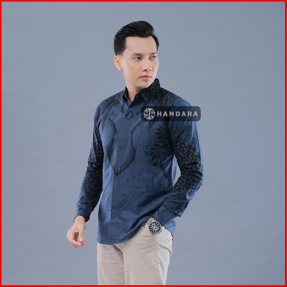 Handara Batik Premium Pria Lengan Panjang Slim Fit Furing - Basura Midnight