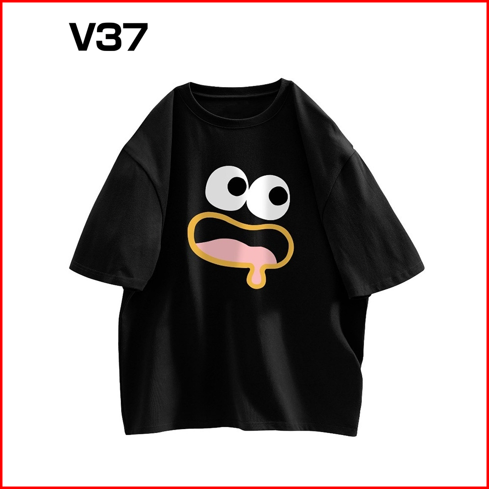 V37 American-style Pure Cotton Unisex Shirt With Minimalist Pattern Short Sleeve Men S T-shirt