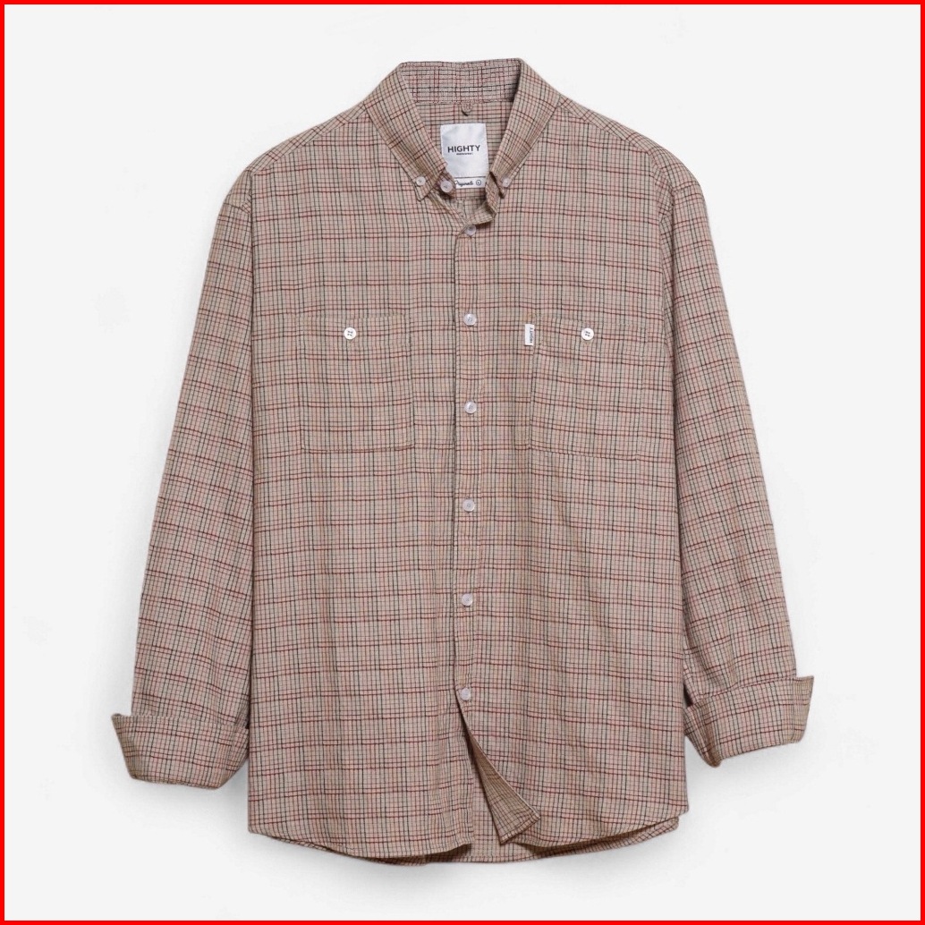 Highty Brown-red Grid Cotton Shirt Kemeja Lengan Panjang Pria