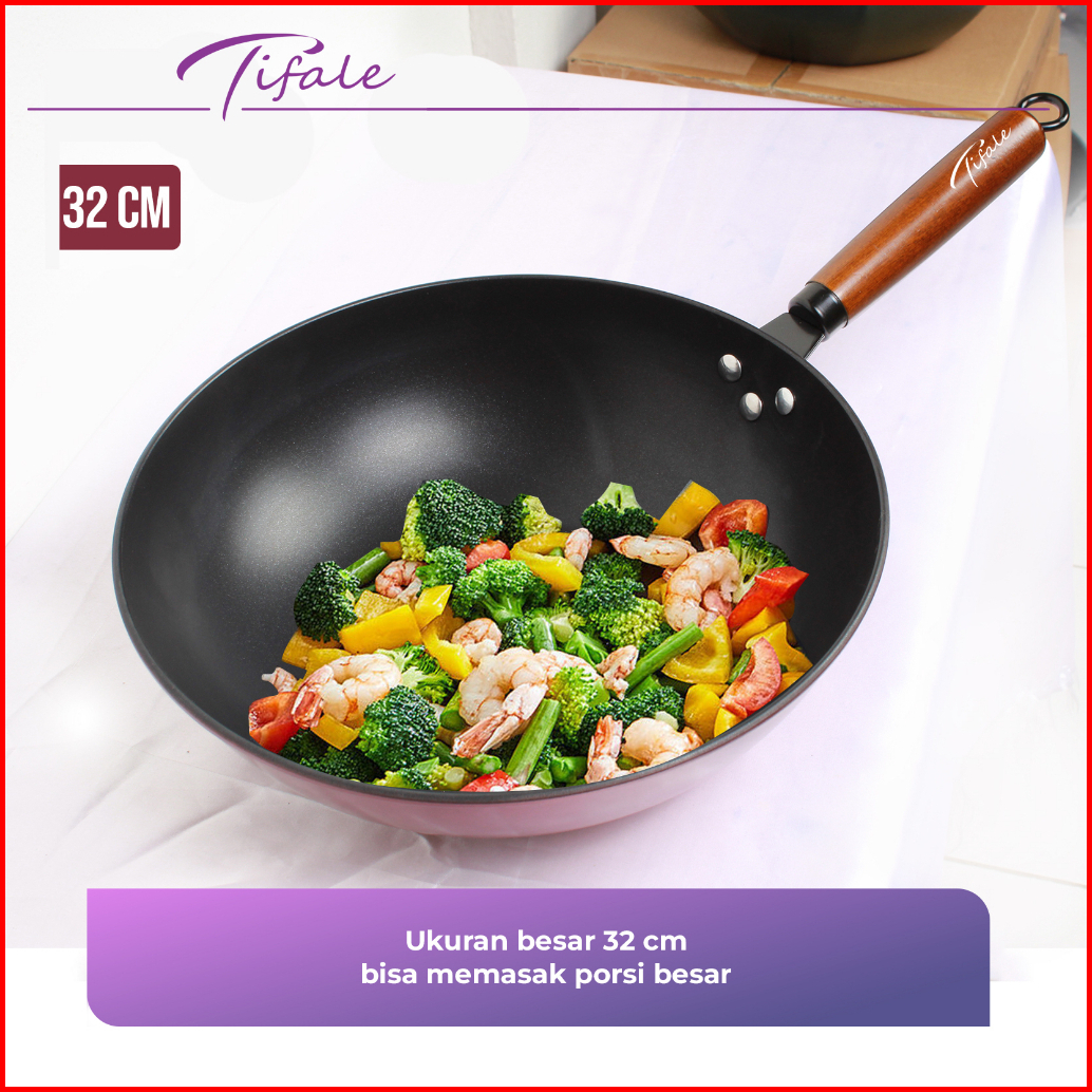 Ready Stock Tifale Diamond Wokpan Wajan Penggorengan Anti Lengket Batu Medis Ukuran 32cm
