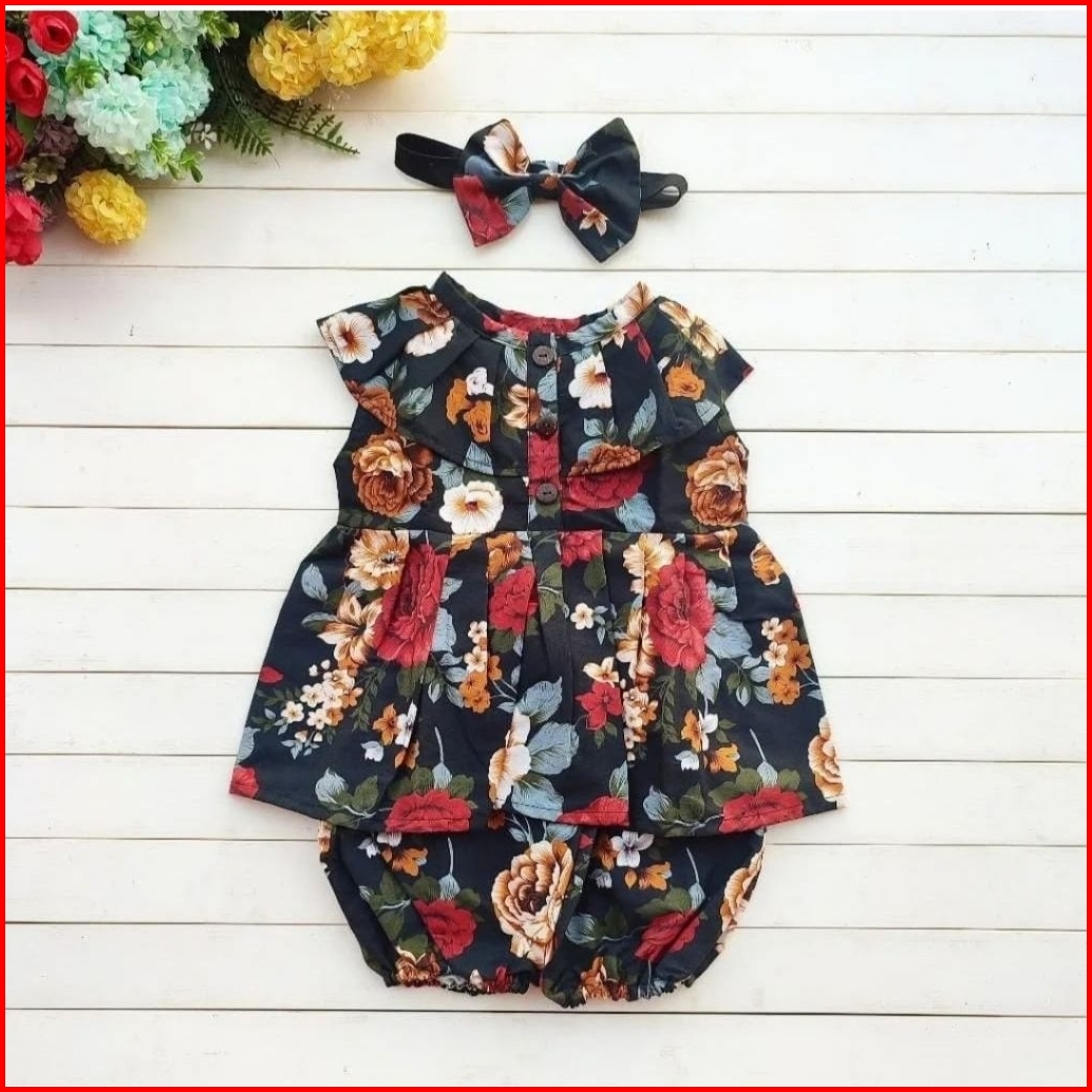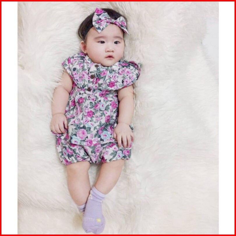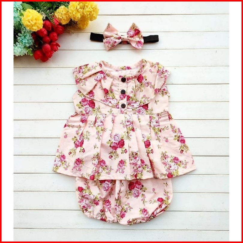 1 Set Setelan Baju Bayi Peplum 0-12bulan Free Bando