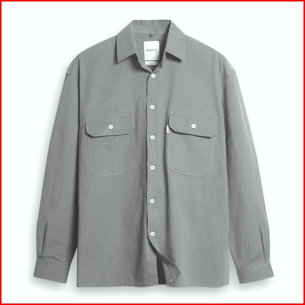 Highty Grey Twill Oversized Shirt Kemeja Lengan Panjang Pria