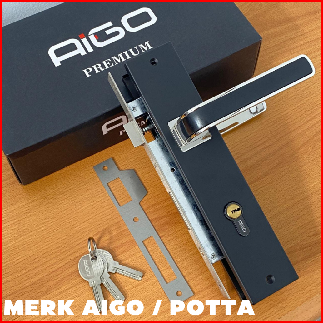 1 Set Kunci Pintu Rumah Kotak Lengkung Hitam Doff Gagang Pintu Besar 25cm Hitam Doff Minimalis