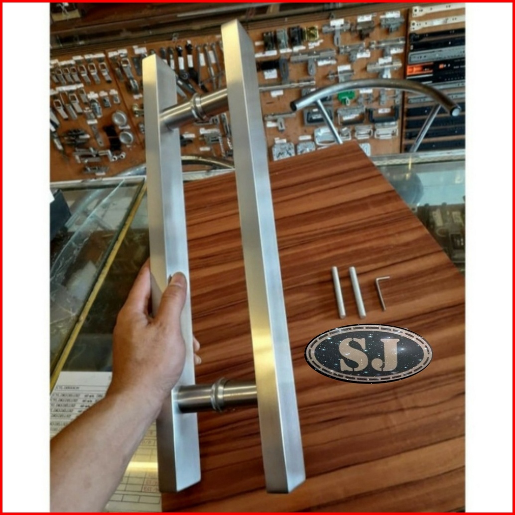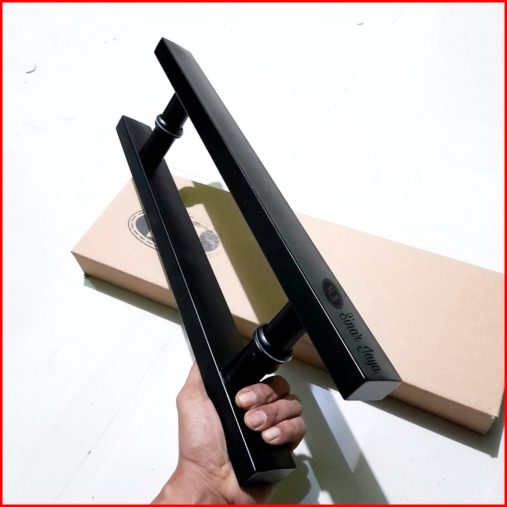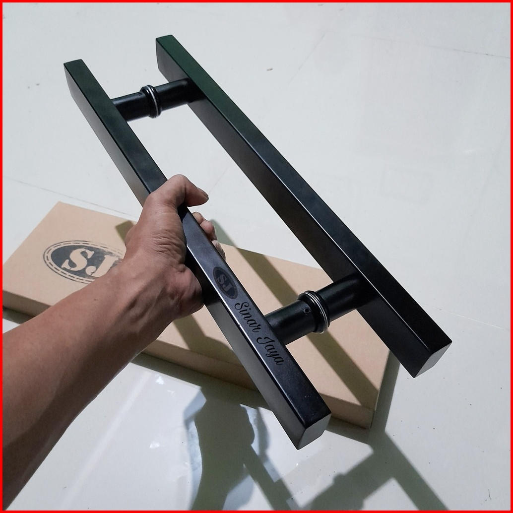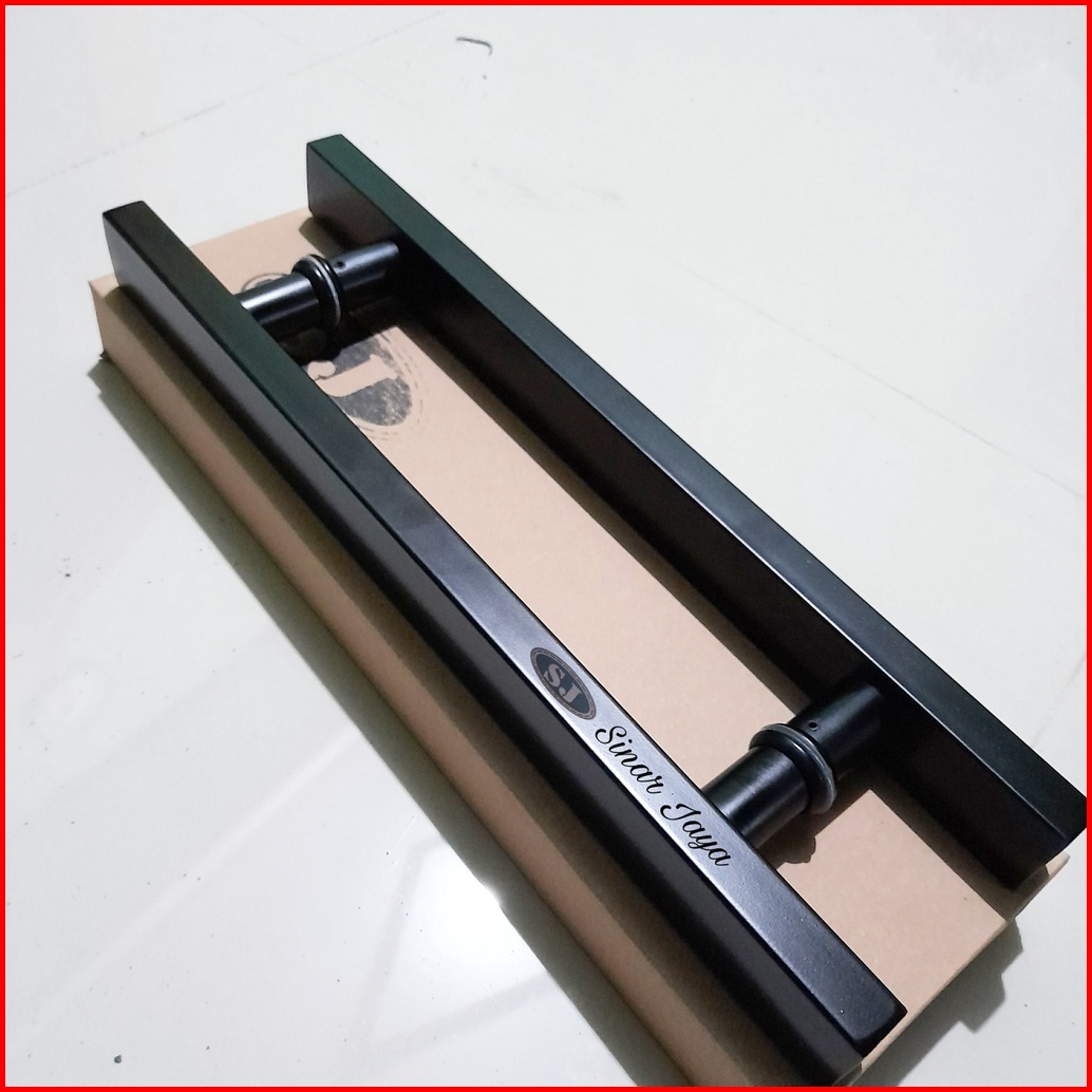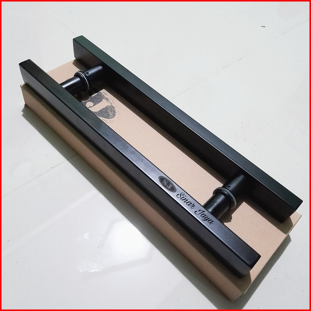 Handle Pintu Baut Tembus Full Black 60cm Gagang Tarikan Pintu Aluminium Pegangan Pintu Kaca Mewah