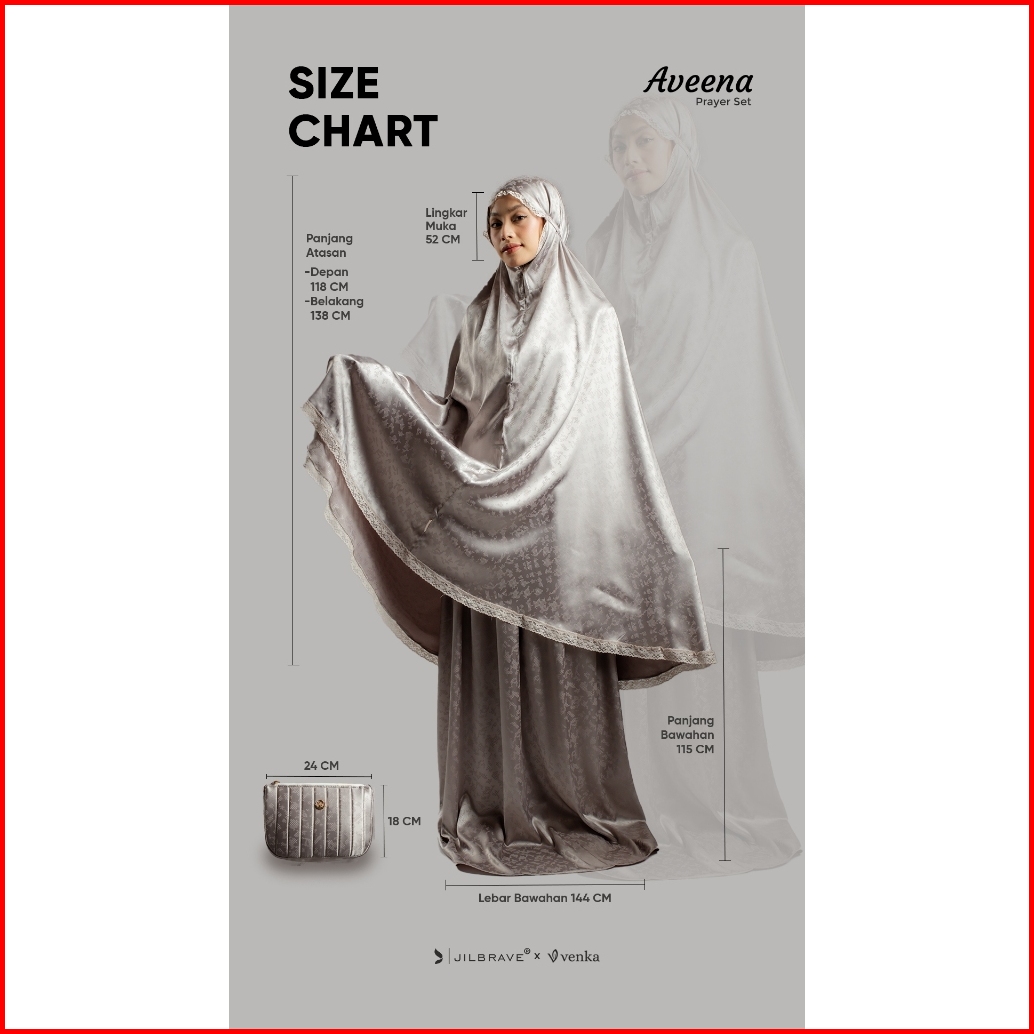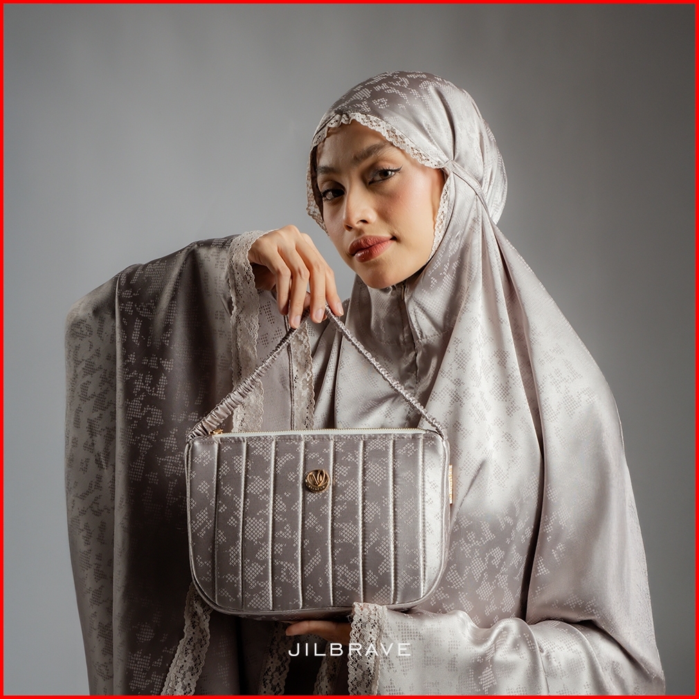 Jilbrave Aveena Prayer Set Mukena Dewasa 2 In 1 Silk Emboss Premium Pouch Set