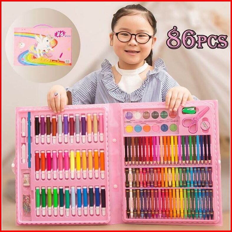 Stationary Set Isi 86 Pensil Crayon Warna Cat Air Perlengkapan Sekolah Menggambar Anak Alat Warna