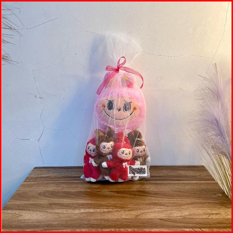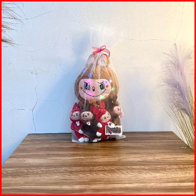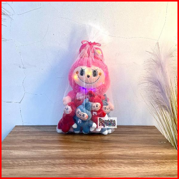Boneka Labubu Beranak Pakai Lampu Led Anak Bisa Jadi Gantungan Kunci Kemasan Kain Jaring Dan Pita