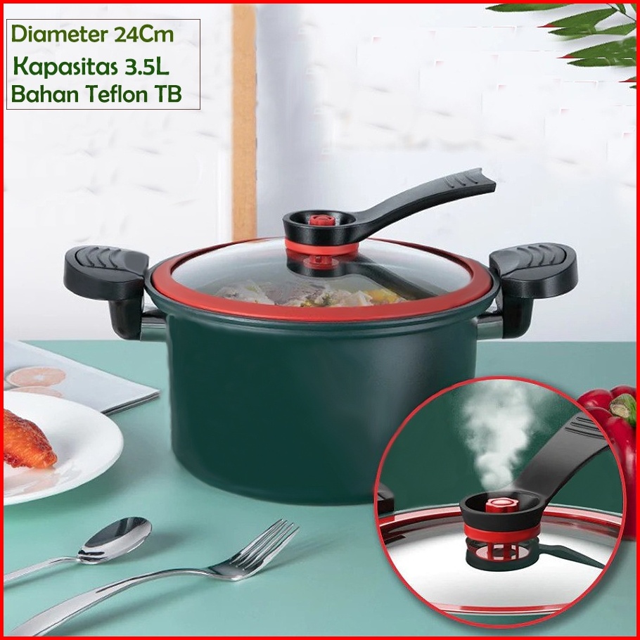 Panci Presto Set Tutup Kaca 3 5l Anti Lengket Panci Teflon Stainless Steel 24cm Cookware Set