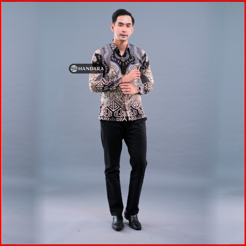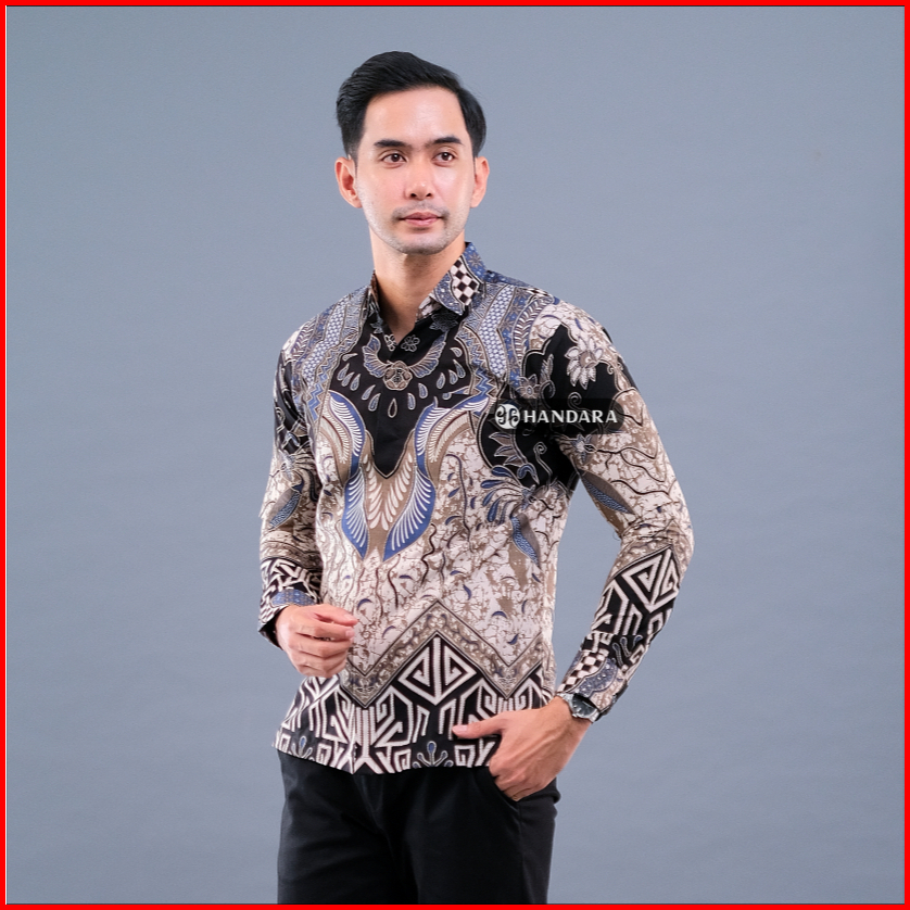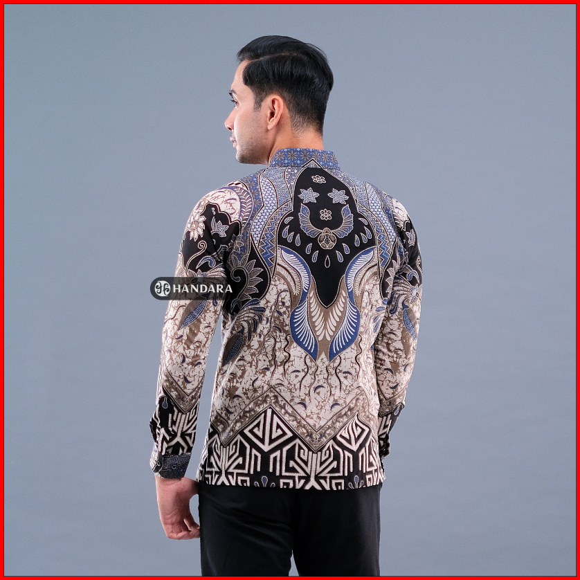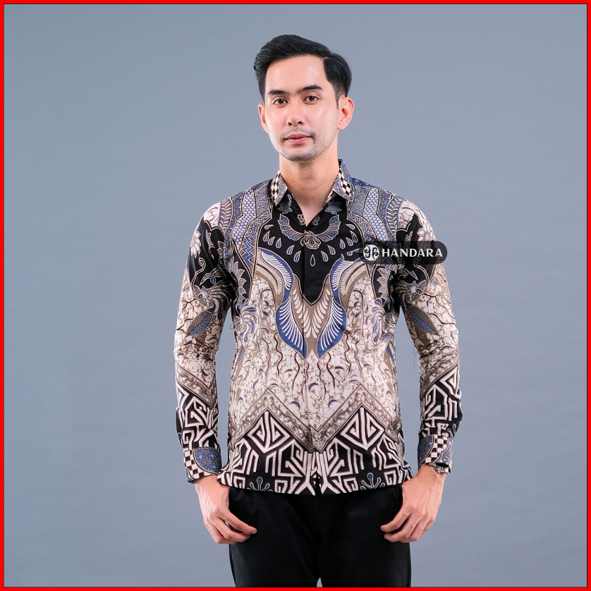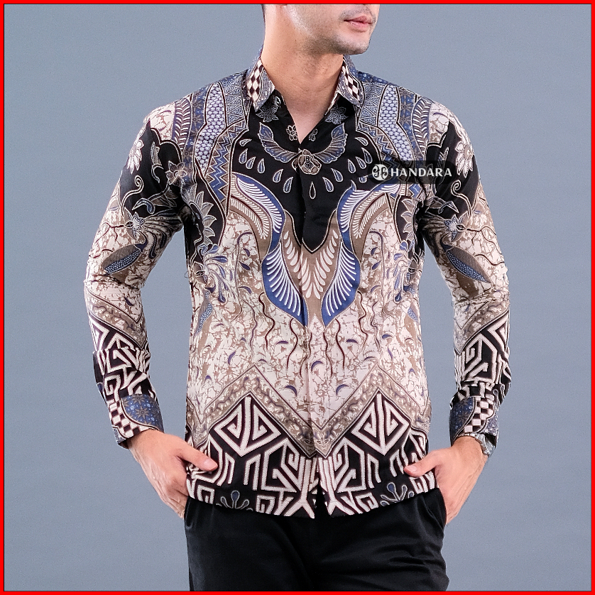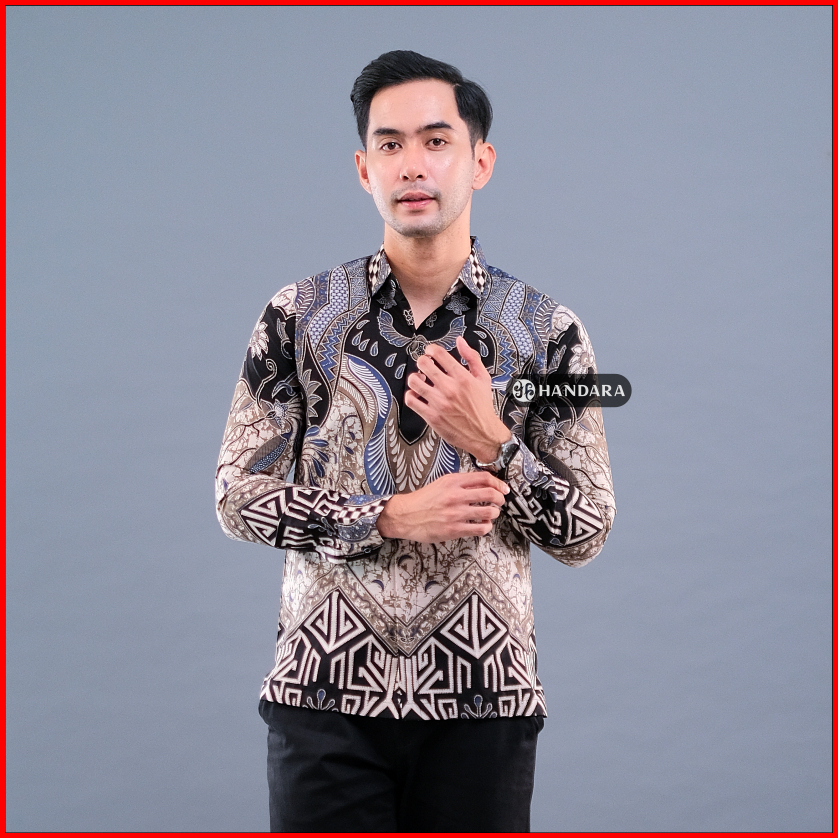 Handara Batik Premium Pria Lengan Panjang Slim Fit Furing - Basura Poleng