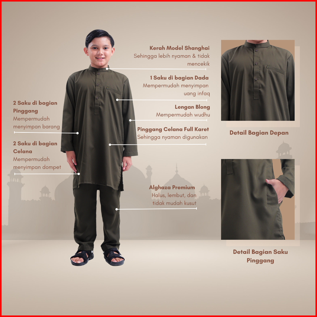 Alghaza Mubarak Kurta Anak Pria Setelan Kurta Yusuf Anak