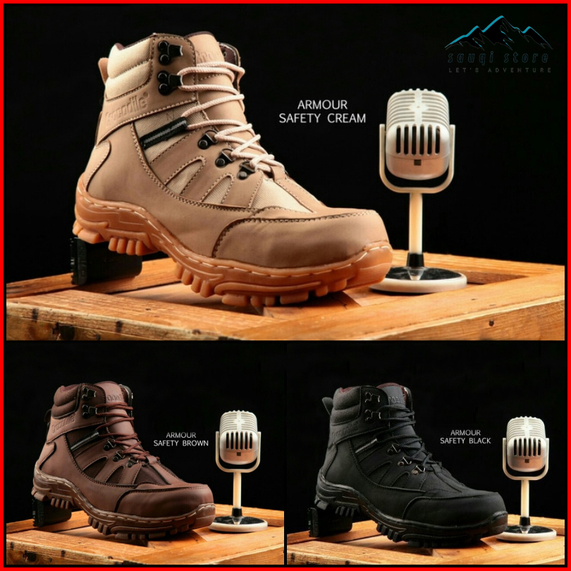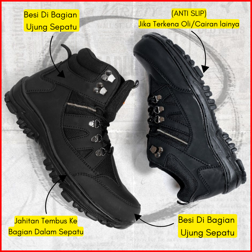 Sepatu Safety Boots Pria Armor Safety Boots Sepatu Outdor Turing Hiking Bikers Ujung Besi Kulit Asli