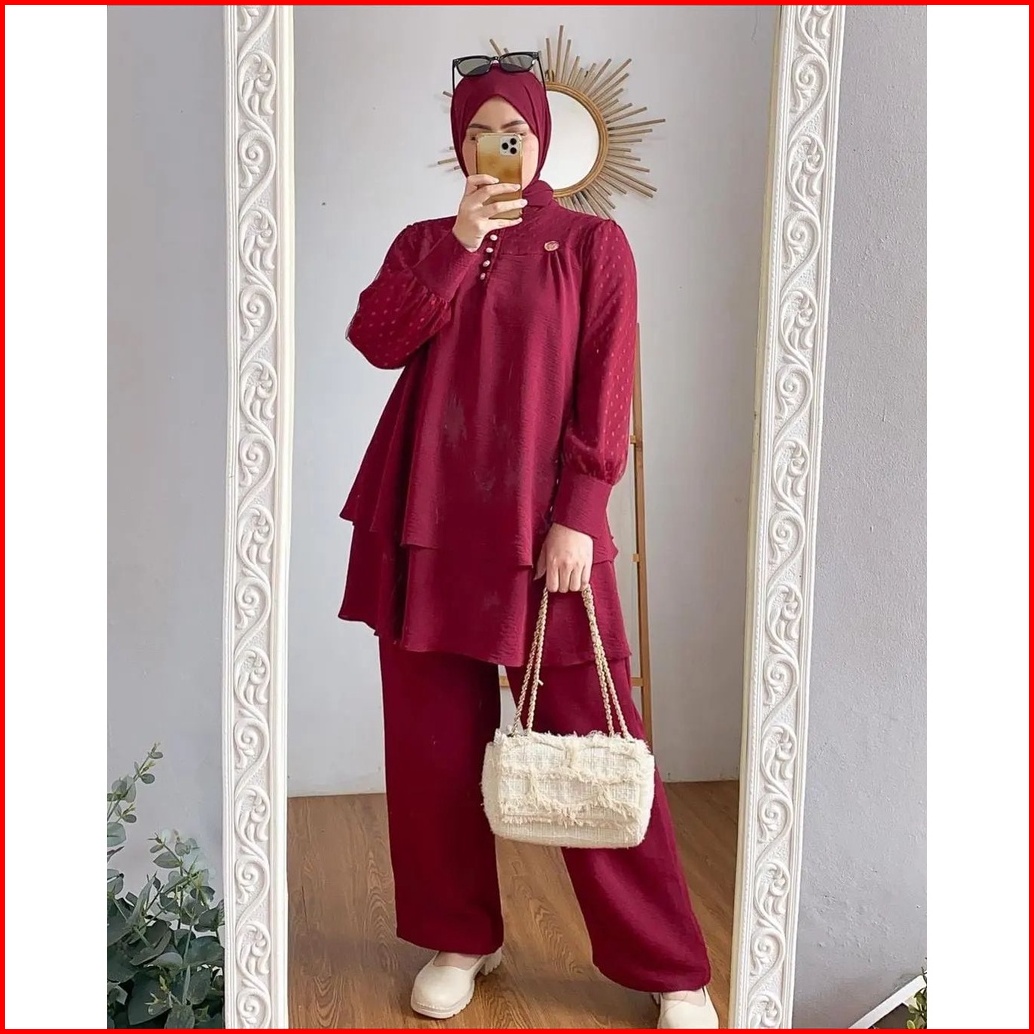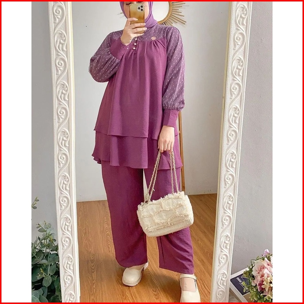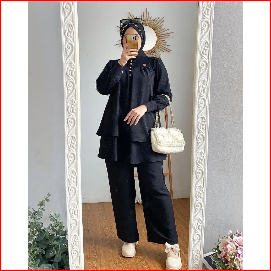 Hanna Set Setelan Wanita Bahan Crinkle Mix Tiledot Terbaru Atasan Celana Fashion Kekinian Murah Mf