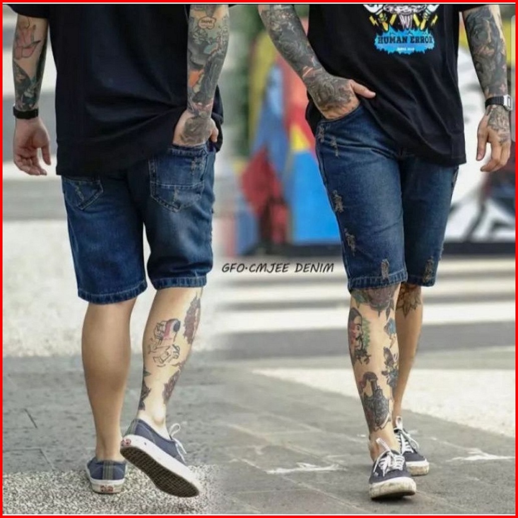 Celana Pendek Jeans Sobek Pria Dewasa Celana Sobek Distro Non Streach Casual Reguler Denim Vintage