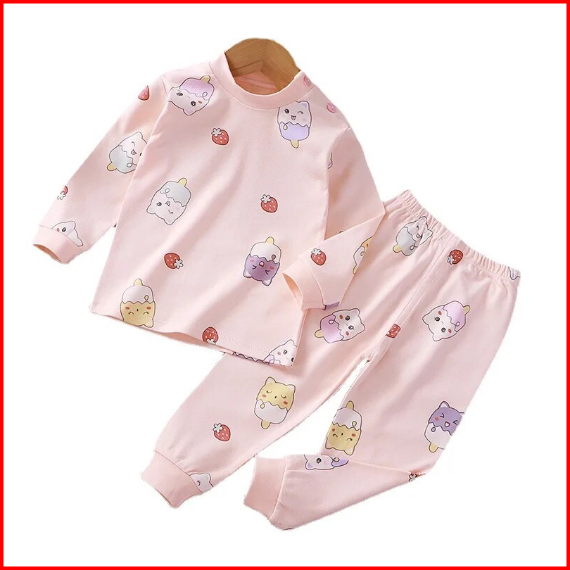Set Piyama Anak Perempuan Bahan Katun Import Premium Quality Gambar Ice Cream Set Baju Tidur Anak Bahan Katun Adem Baju