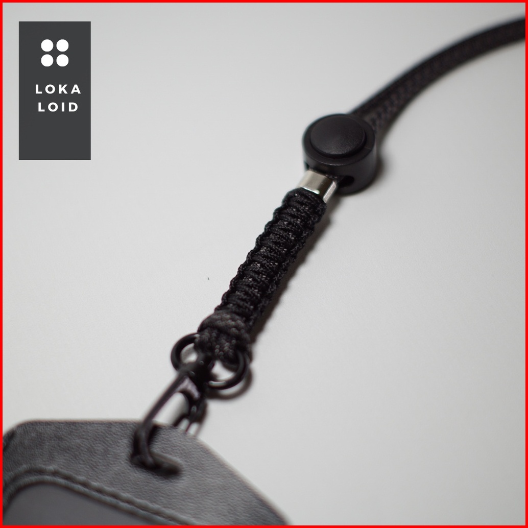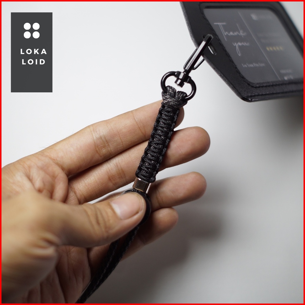 Lanyard Id Card Holder Tali Gantungan Nametag Kulit Motif Paracord Abu Strip Premium Design By Lokaloid