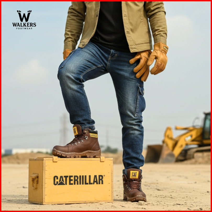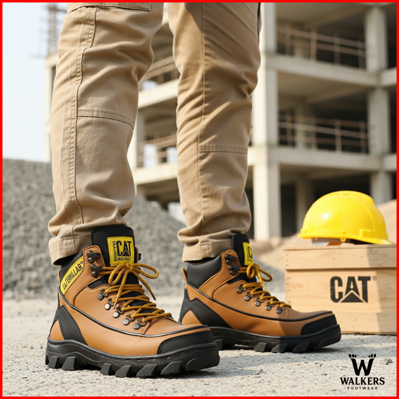 Sepatu Safety Pria Boots Caterpillar Steel Toe - Sepatu Boots Pria Safety Shoes Ujung Besi - Sepatu Pria Kerja Lapangan