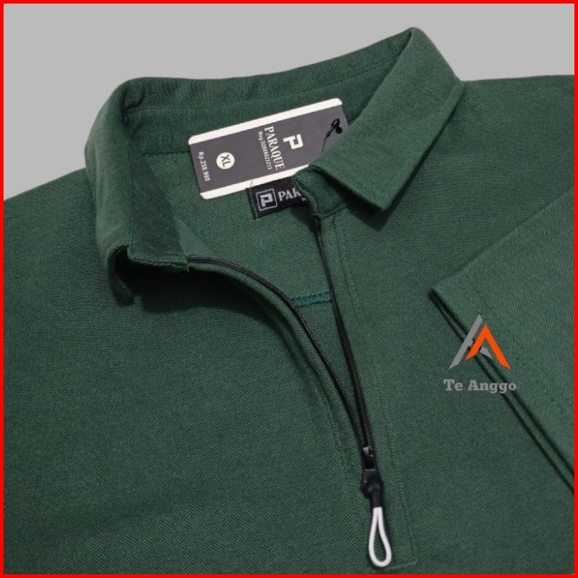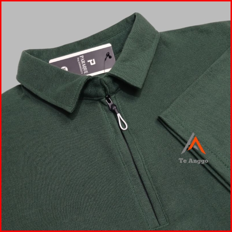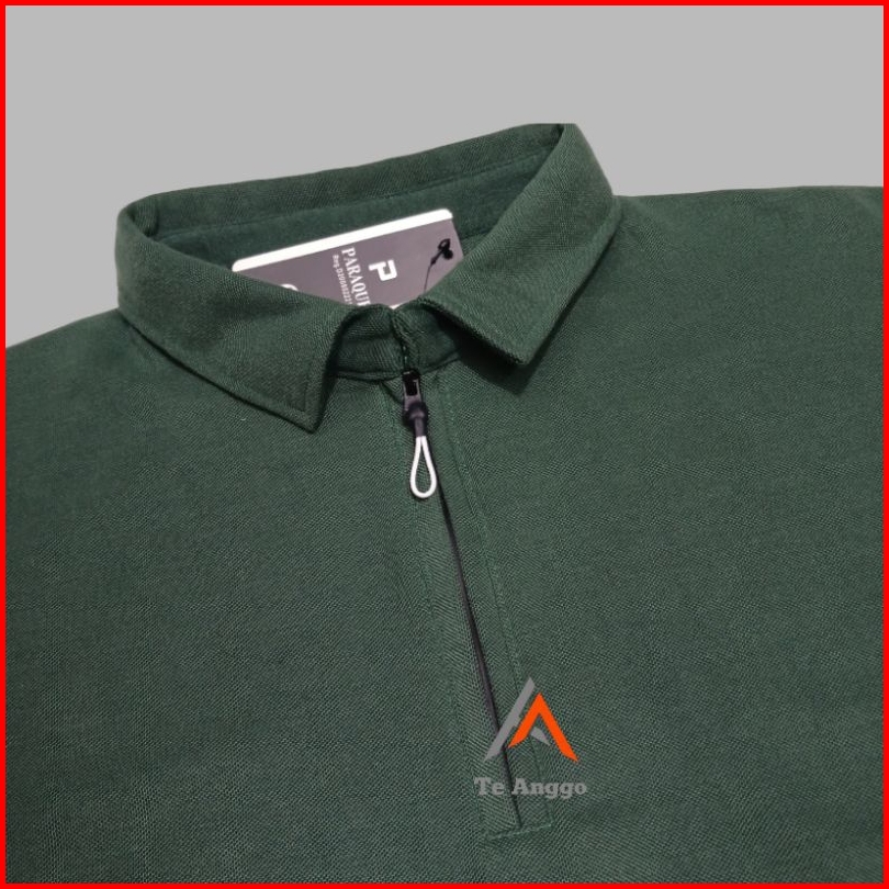 Kaos Polo Zipper Pria Kerah Lengan Pendek Polo Shirt Zipper Polos Hijau Botol M L Xl Xxl
