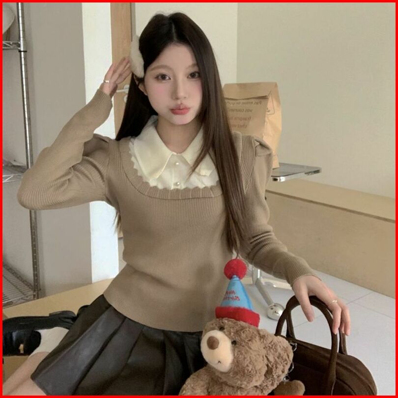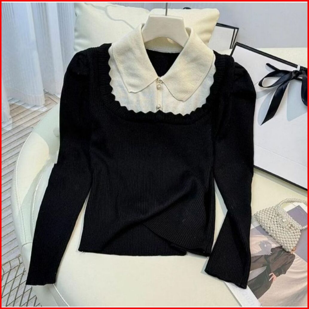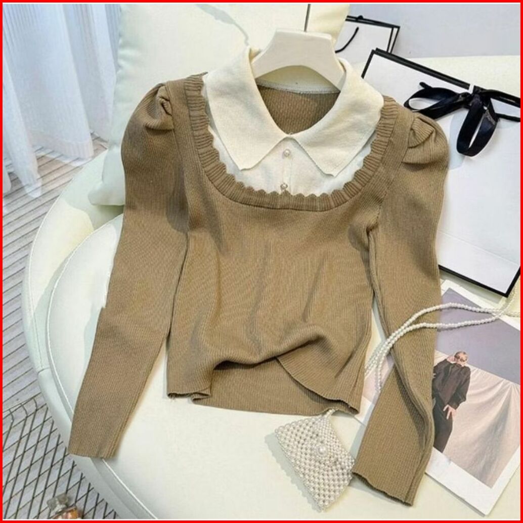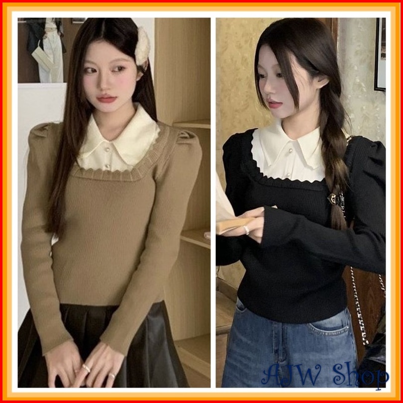 Ajw Atasan Wanita Lace Kerah Kemeja Body Knit Premium Rbc Kemeja Wanita Lace Kerah Kemeja Body Knit Lengan Panjang Sweat