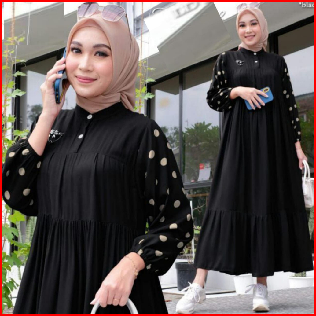 Dasima Gamis Polos Kombinasi Polkadot Midi Dress Muslim Terbaru 2024 Rayon Premium Tebal Halus