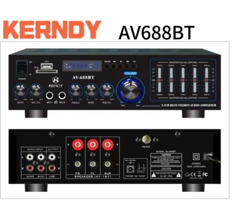 Amplifier Kerndy Bluetooth 5.3 Audio EQ AV-688BT Channel 2.1 Full Bass SUBWOFER Amplifier Karaoke Home Theater AV688BT