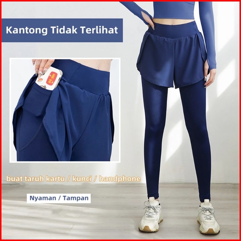 Celana Legging Olahraga 2 In 1 Celana Inner Legging Untuk Yoga Lari Gym