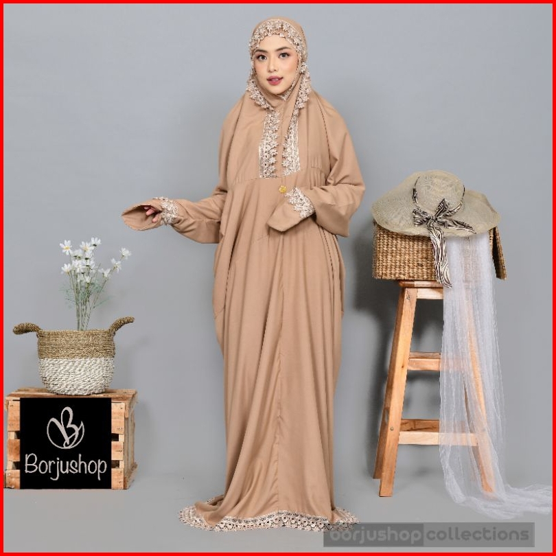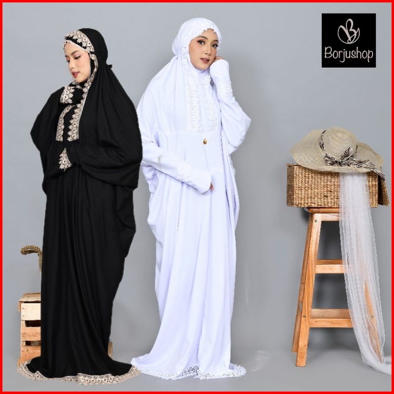 Borjushop - Mukena Terusan Dewasa Katun Polos Renda Bintang Krisdayanti Mukenah Terusan Putih