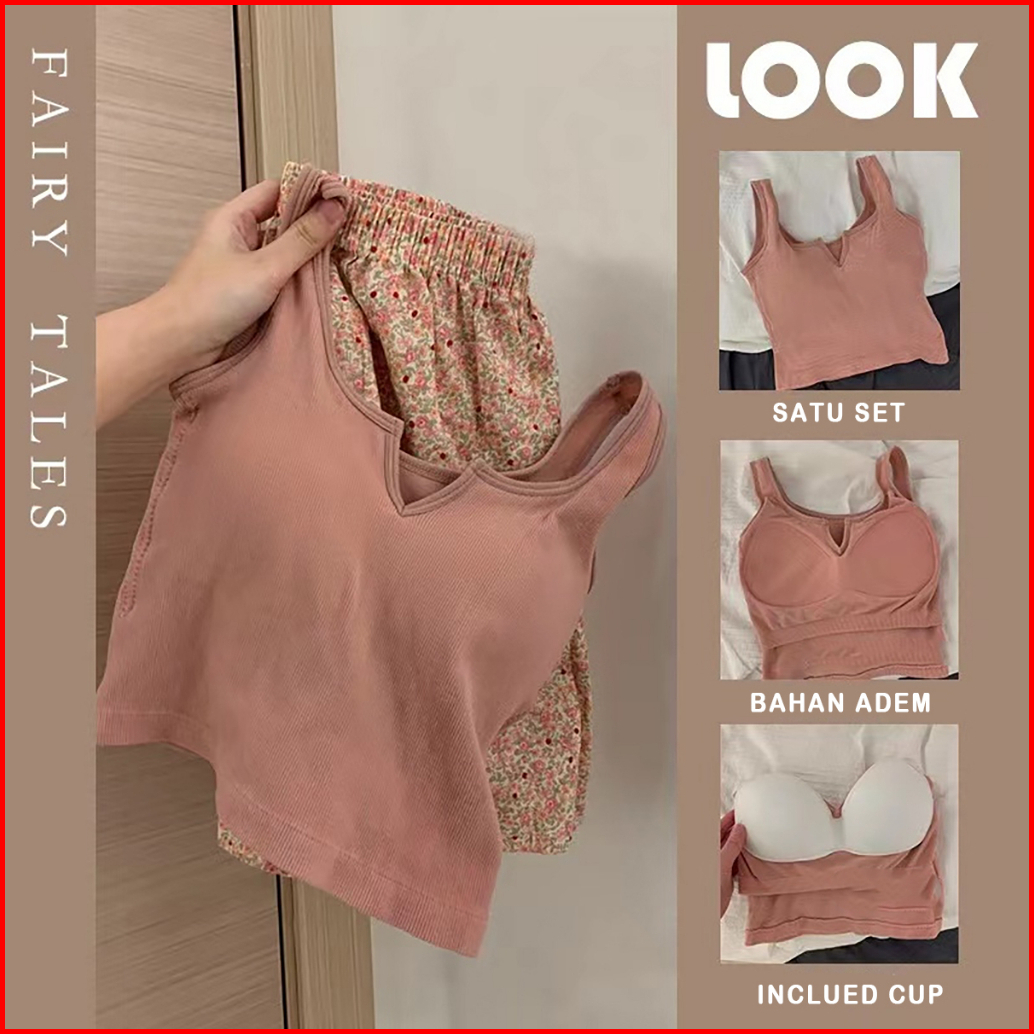 Piyama Set Baju Tidur Baju Celana Pendek Setelan Tank Top Atasan Celana Pendek Hot Pants Short Pants 2in1 Set 5019