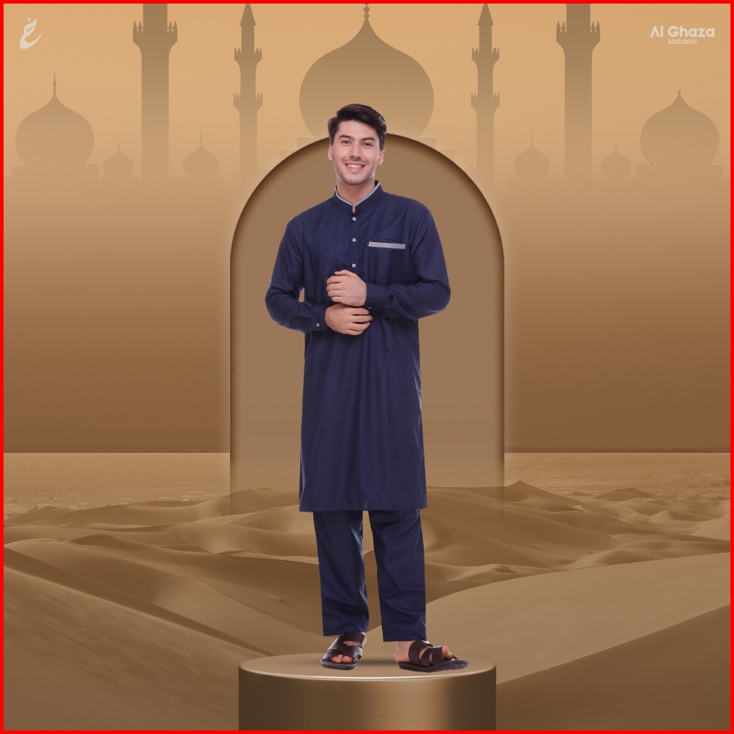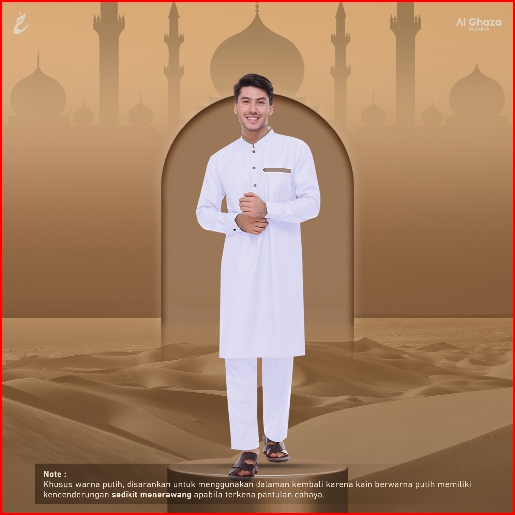 Alghaza Mubarak Kurta Dewasa Pria Setelan Kurta Madinah Lengan Kemeja