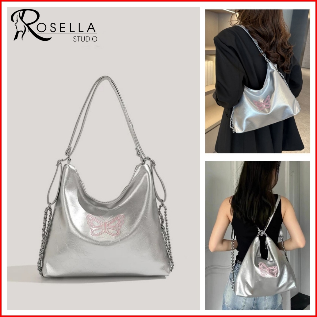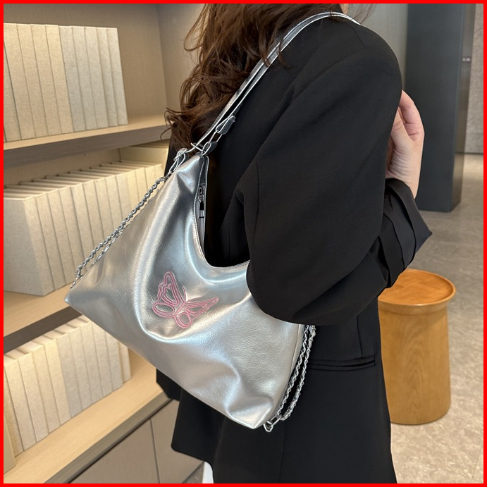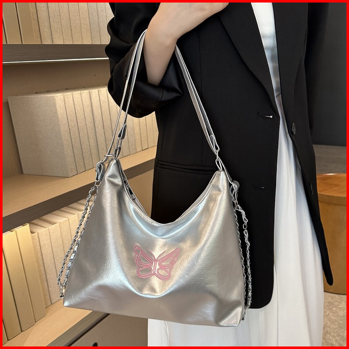 Tote Bag Tas Bahu Fashion Kulit Kupu-kupu Butterfly Shoulder Y2k Bag Tas Bahu Wanita Tas Sekolah