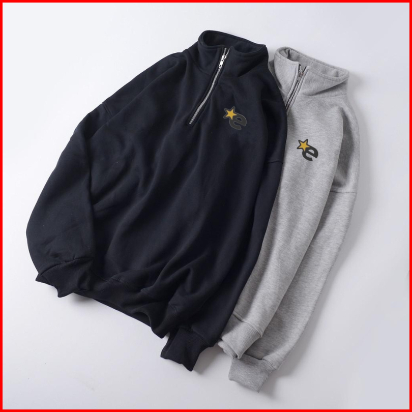 Erigo Halfzip Sweater Pria Logo Bintang Jaket Zipper Distro High Quality Crewneck Berkerah