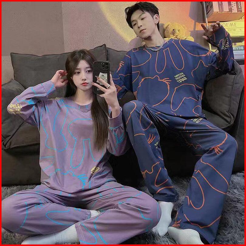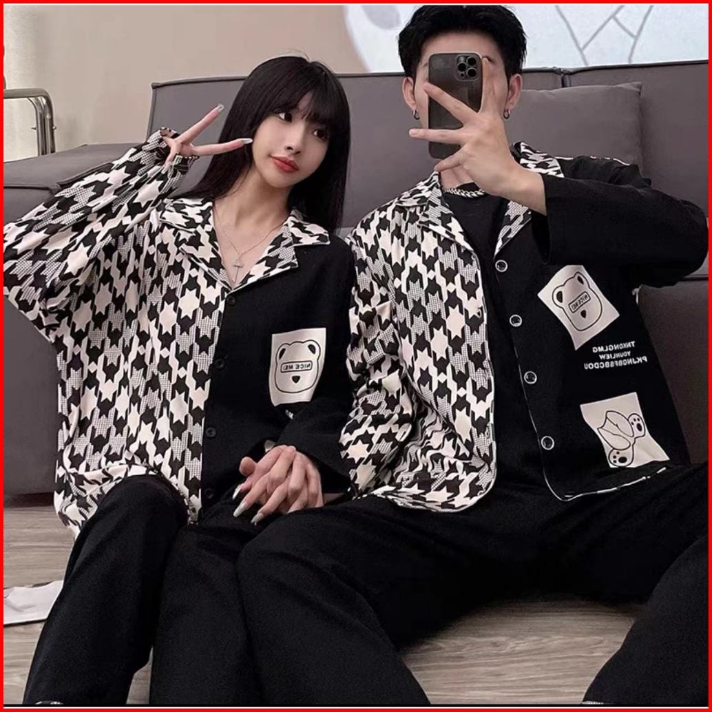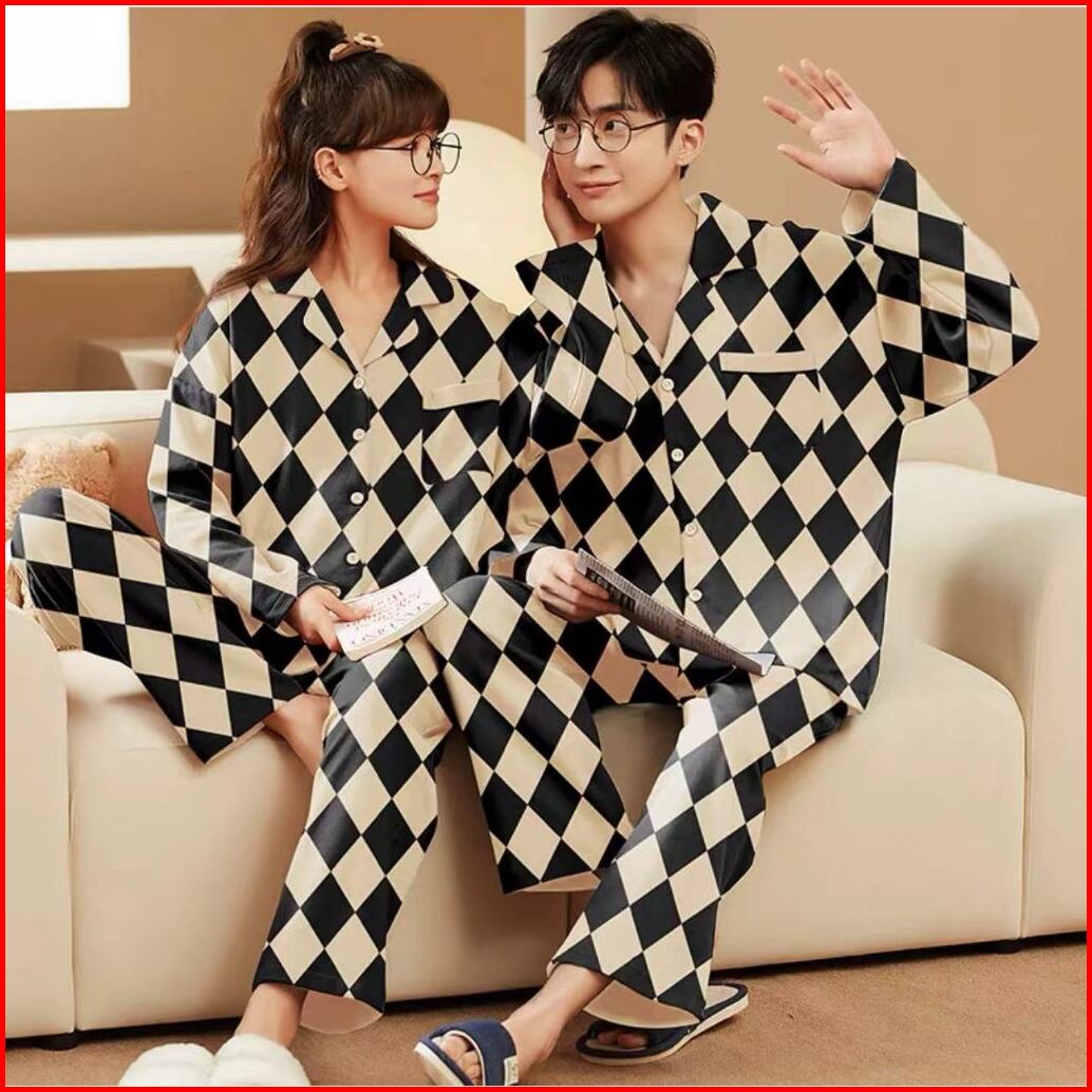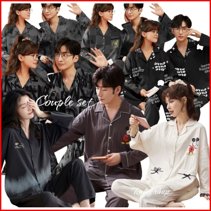 Rulif Setelan Piyama Baju Tidur Set Couple Pria Wanita Model Krah Kancing Zemee 8701-7508