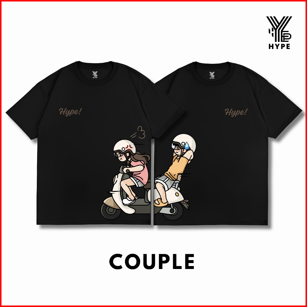 Hype Kaos Couple Riding A Motorcycle - Unisex T Shirt Pasangan Bucin
