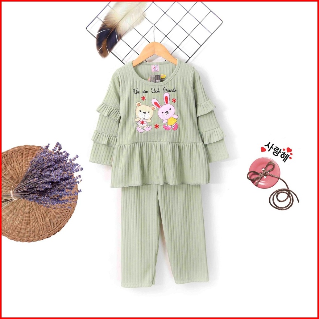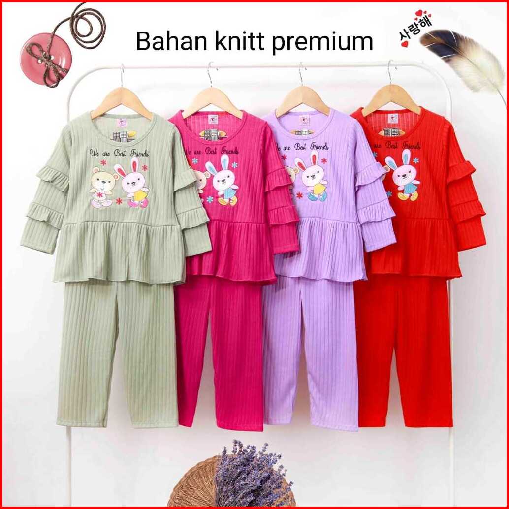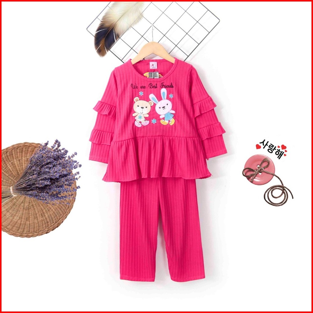 Stelan Anak Perempuan 2-9 Tahun Gambar Rabbit Bordir Stelan Anak Bahan Knit Super Tebal One Set Anak