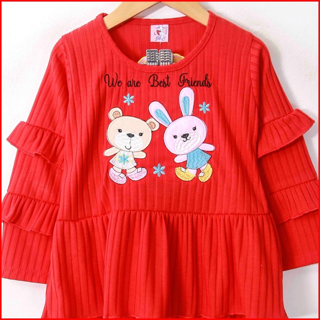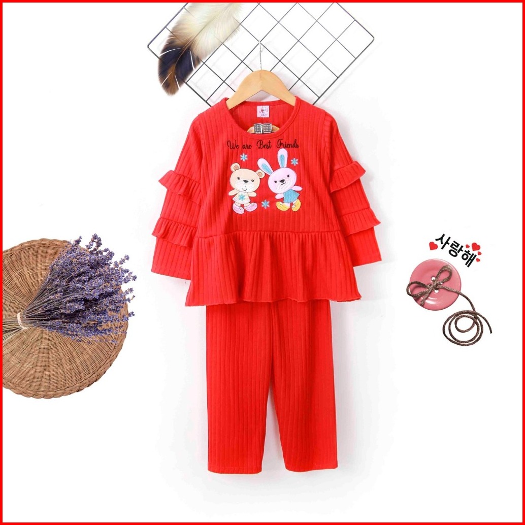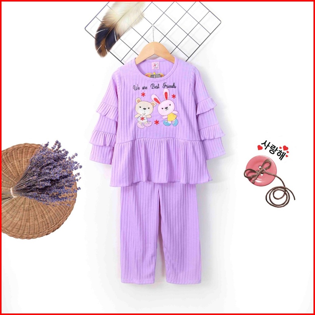 Stelan Anak Perempuan 2-9 Tahun Gambar Rabbit Bordir Stelan Anak Bahan Knit Super Tebal One Set Anak